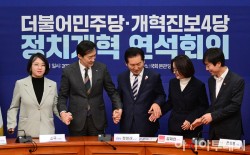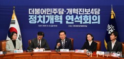 더불어민주당과 개혁진보 4당(조국혁신당, 기본소득당, 진보당, 사회민주당)이 한 자리에 모여 내란 종식 의지를 다졌다. 다만 집권 여당인 민주당은 이를 위해 사법개혁이 우선돼야 한다는 입장을 내세웠지만 혁신당을 포함한 여타 정당들은 정치개혁을 강조했다.정청래 대표는 12일 개혁진보 4당이 정치개혁 연석회의에서 "정치개혁에 앞서 더 중요한 건 내란청산이다. 조희대 사법부는 내란청산에 대한 의지가 없다고 생각한다"며 " 확실한 내란청산이야말로 모..