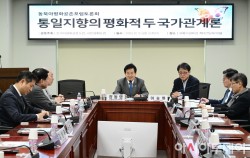정동영 통일부 장관이 12일 국회 의원회관에서 열린 통일지향의 평화적 두 국가관계론 : 동북아평화공존포럼 토론회에 참석하고 있다.