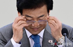 정동영 통일부 장관이 12일 국회 의원회관에서 열린 통일지향의 평화적 두 국가관계론 : 동북아평화공존포럼 토론회에서 안경을 벗고 있다.