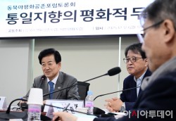 정동영 통일부 장관이 12일 국회 의원회관에서 열린 통일지향의 평화적 두 국가관계론 : 동북아평화공존포럼 토론회에서 인사말을 하고 있다.