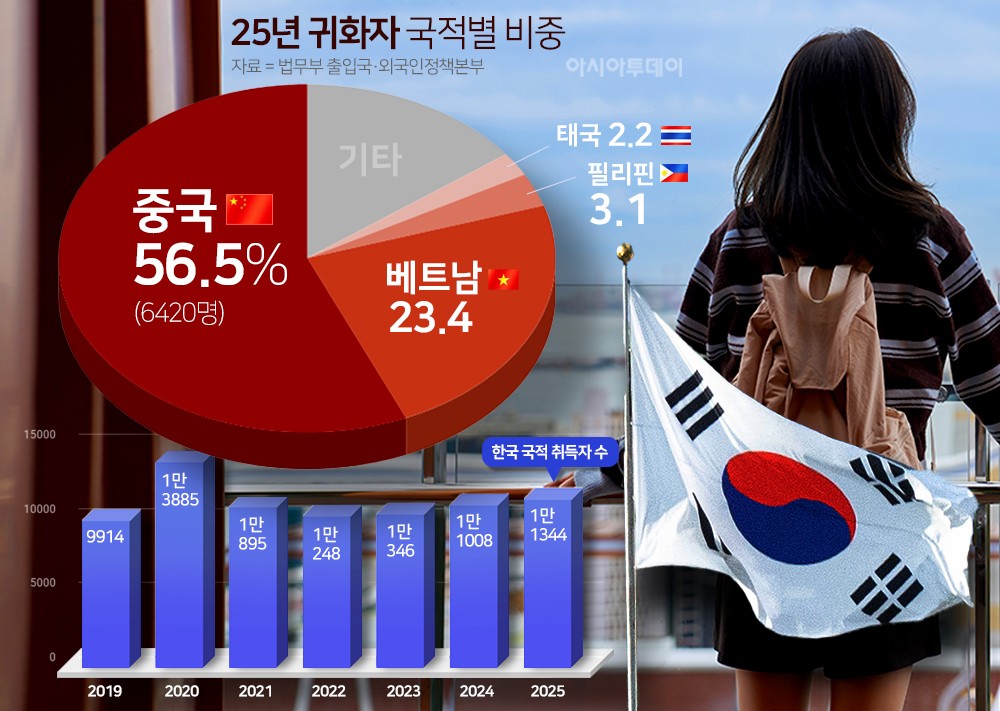 작년 귀화자 중국인 최다...한국인 1.8만명은 미국 이..