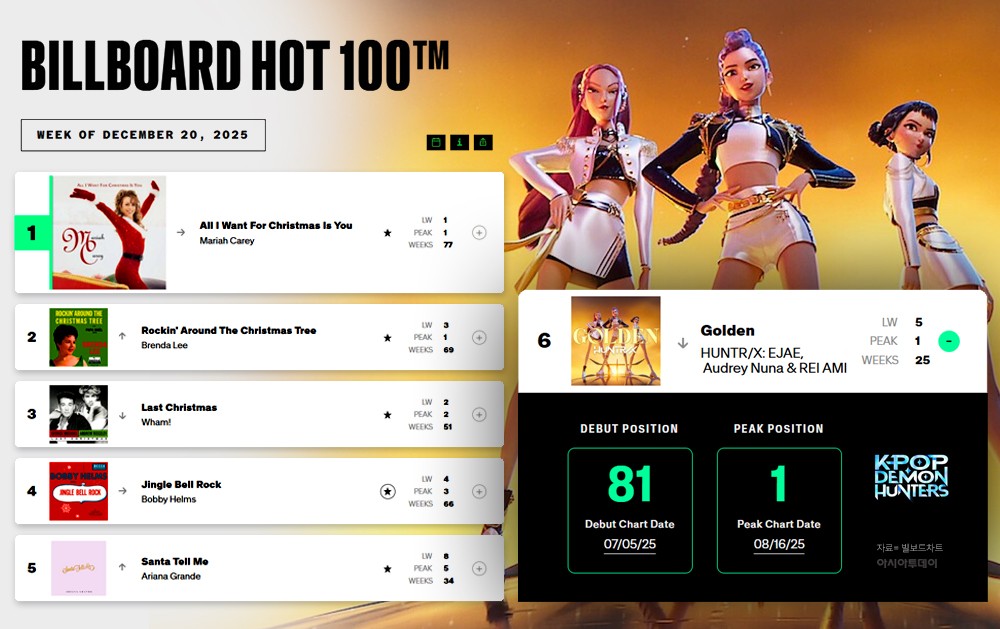 ‘케이팝 데몬 헌터스’ OST, 캐럴 공세 속 빌보드 2..