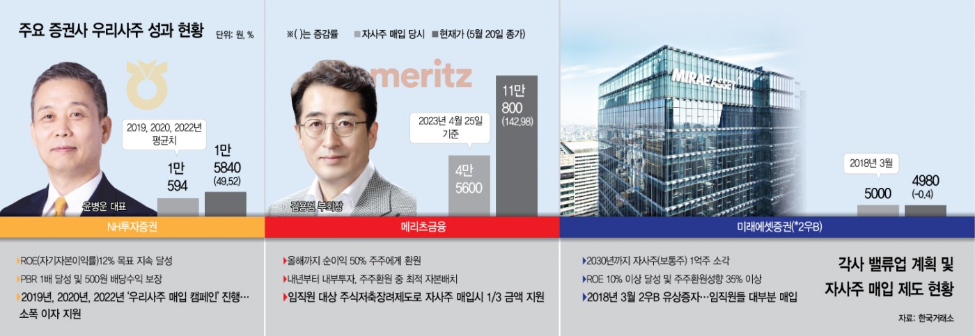증권가 ‘우리사주’ 희비… 주가상승·배당금 메리츠 웃었다